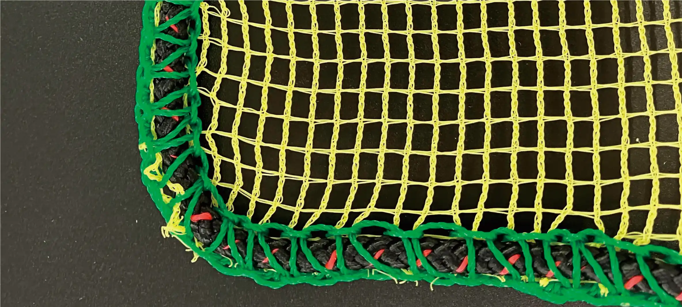 軽量かつ安価でありながら、撚糸構造を採用しているため、通常の単糸ネットに比べて耐久性が高く、無結節設計によりネットを張った際の仕上がりが美しく景観にも馴染みます。