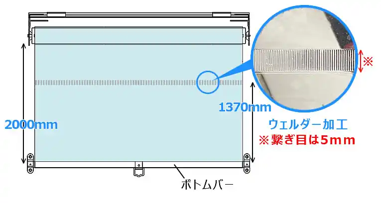 各シートの原反生地巾により、スクリーンに継ぎ目加工(ウェルダー加工)が入ります。