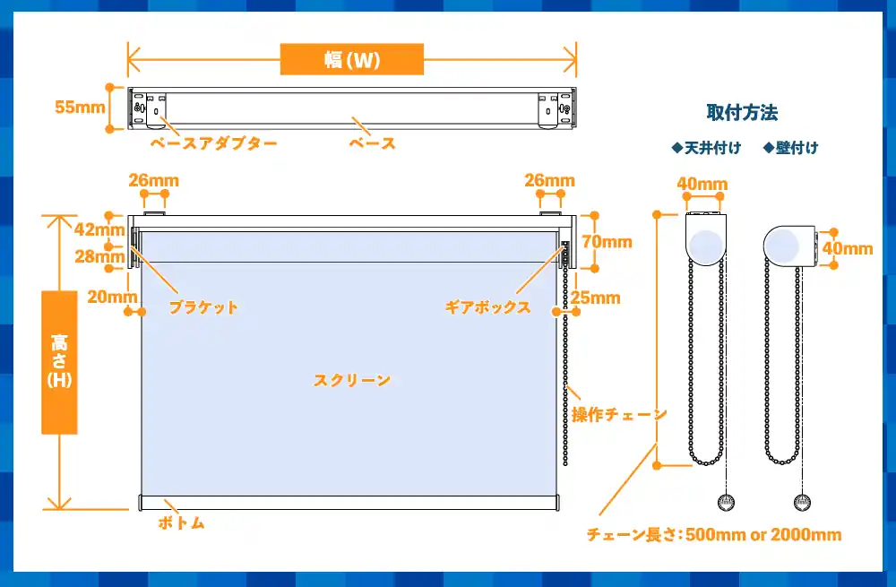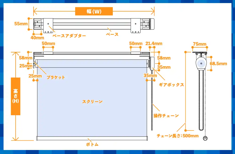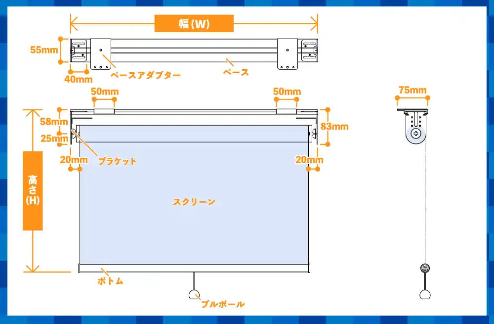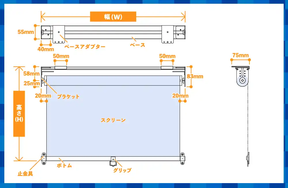 ※スクリーン幅(W)と丈(H)の寸法は、1:4で対応します。