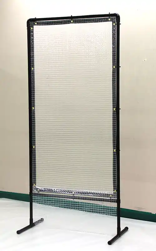 - ビニフェンスのフレーム素材はプラスチックコーティングしたメッキパイプを使用し、軽量で移動もラクラク。お好みの場所に簡単に設置ができます。とても軽いので、万が一倒れた場合でも大きな怪我の心配が軽減されます。